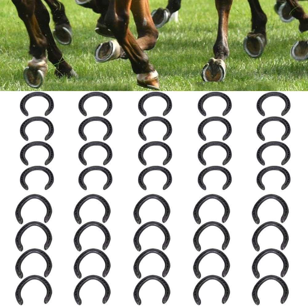 [ Q235 STEEL] Made of heavy Q235 steel for maximum durability and strength.[ENHANCED SUPPORT] Wide web design increases support area and provides robust hoof wall support.[EFFICIENT NAILING] Wide full crease ensures nail head burial without hanging, enhancing stability.[SNOW AND CLAY RELIEF] Tapered design prevents snow and clay accumulation, reducing fatigue in horses.[MULTIPLE USES] Ideal for Equestrian Sport activities or as stylish wall decor, versatile for various purposes.Spec:Condition: Brand NewItem Type: HorseshoesMaterial: Q235 SteelColor: As Pictures Shown Product Size: Front Palm Size: Approx. 13x12.8x0.7 cm/ 5.1x5.1x0.3 inRear Palm Size: Approx. 12.8x12.8x0.7 cm/ 5.0x5.0x0.3 inPurpose: Horseshoes for horsePackage List:20 x Front Palm Horseshoes20 x Rear Palm HorseshoesNote:1. Please allow 1‑3cm error due to manual measurement. Thanks for your understanding.2. Monitors are not calibrated same, item color displayed in photos may be showing slightly different from the real object. Please take the real one as standard.
